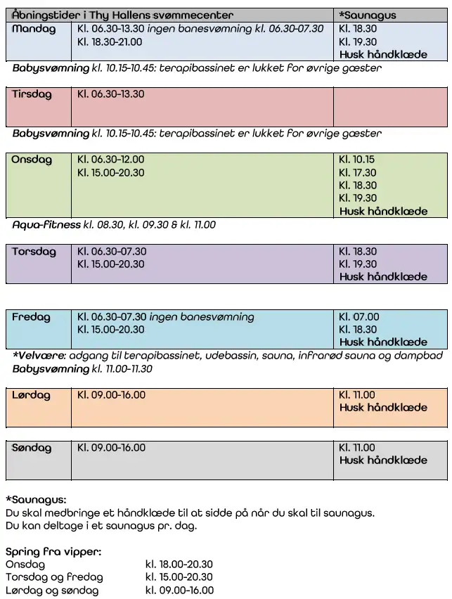 Nye åbningstider i Thy Hallens svømmecenter fra uge 43