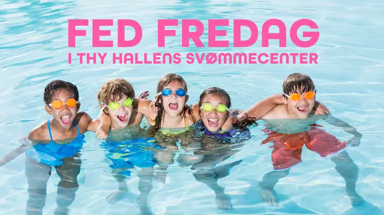 Kom med til en FED FREDAG AFTEN i Thy Hallens svømmecenter med fed musik, konkurrencer, rutsjebaneræs, kæmpe badebolde og saunagus FOR BØRN.