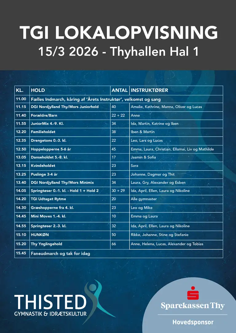 Kom og oplev fællesskabet og glæden ved gymnastikken, når alle vores mange opvisningshold i alle aldre går på gulvet.