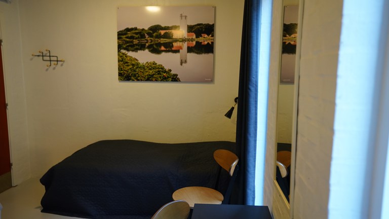 samt et lille tekøkken, toilet, bruser og et fælles opholdsrum, der giver plads til både samvær og afslapning.